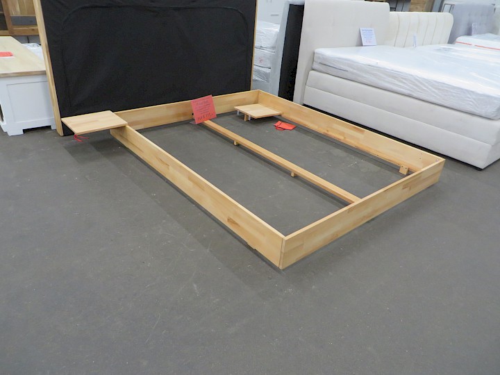 160 x 200 cm, mit 2 Ablagen, Kernbuche massiv geölt, ohne Lattenroste & ohne Matratze
