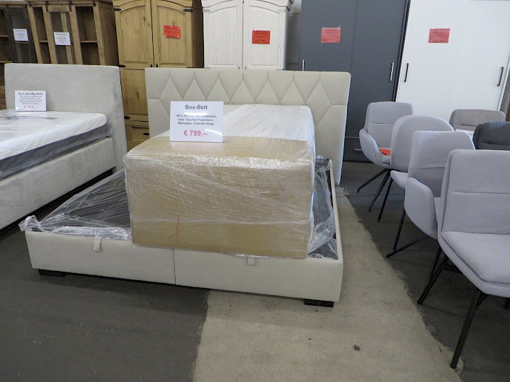 Box-Bett 140 x 200 cm, mit loser Taschen-Federkern-Matratze, Topper, Strukturstoff grau meliert 399,-- € Box-Bett 180 x 200 cm, mit Bettkasten, lose Taschen-Federkern-Matratzen, Chenille beige 799,-- €