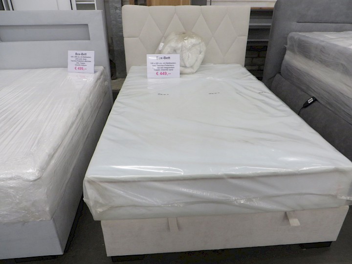 120 x 200 cm, mit Bettkasten, lose Taschen-Federkern-Matratze mit integriertem Topper, Bezug Chenille sand