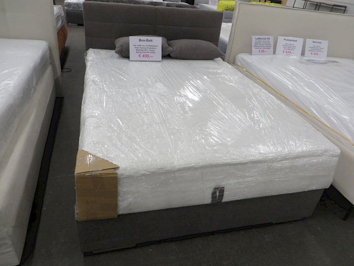 140 x 200 cm, mit Bettkasten, feste Taschen-Federkern-Matratze (H3), Topper, Strukturstoff anthrazit