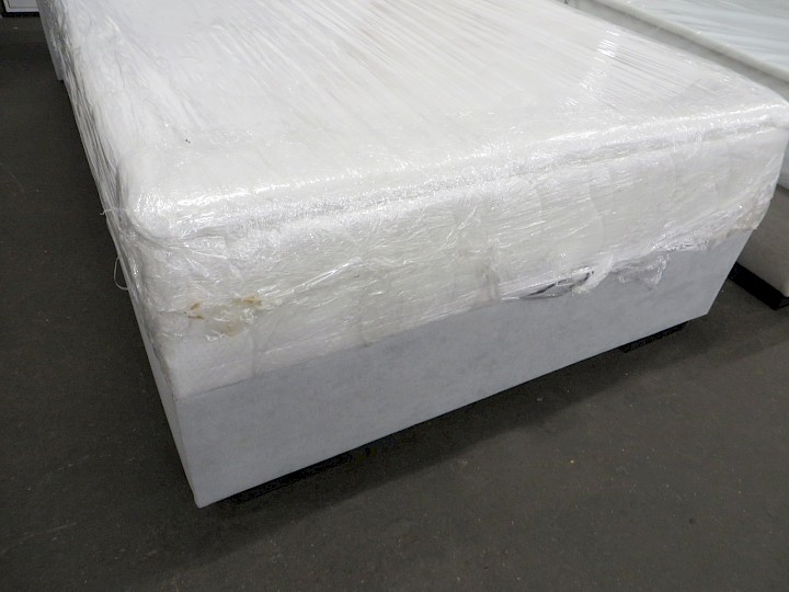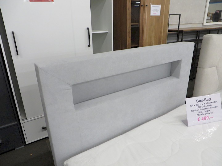 120 x 200 cm, mit Bettkasten, LED-Licht, feste Taschen-Federkern-Matratze, Topper, Chenille hellgrau