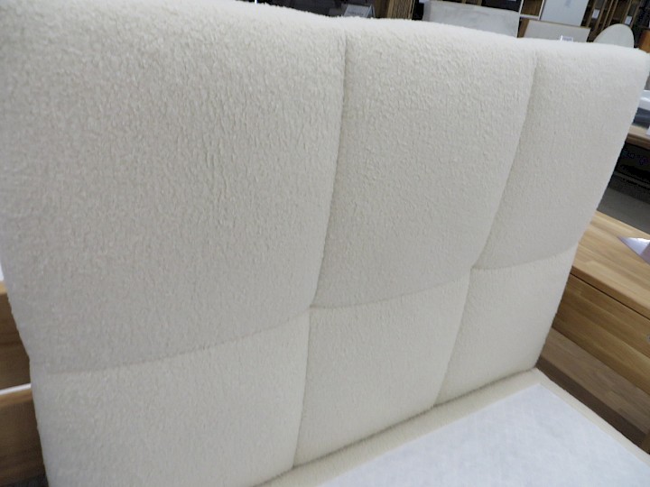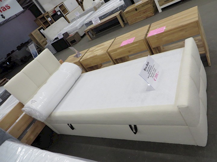 90 x 200 cm, mit Bettkasten, feste Taschen-Federkern-Matratze, Topper, "Bouclé" creme