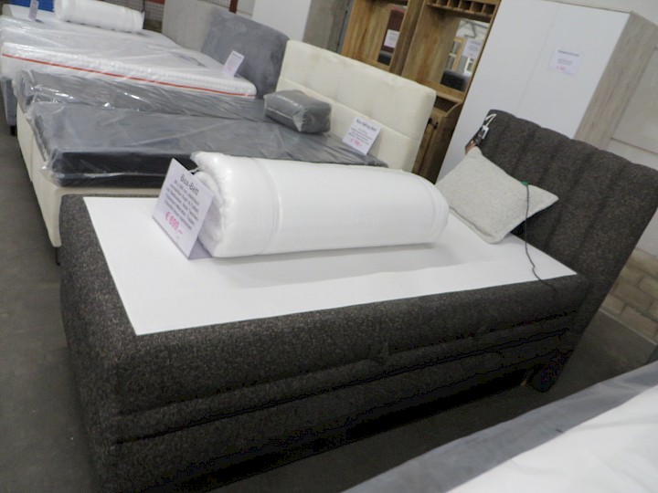 90 x 200 cm, elektrisch verstellbares Kopf- & Fußteil, mit Bettkasten, feste Taschen-Federkern-Matratze, Topper, Chenille braun marmoriert