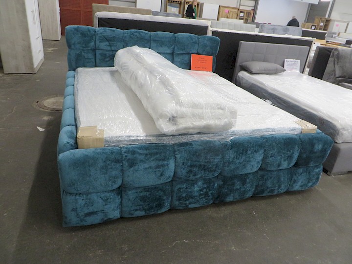 180 x 200 cm, Unterbau mit Bonnell-Federkern, lose Taschen-Federkern-Matratze, Topper, "Flausch-Chenille" türkis