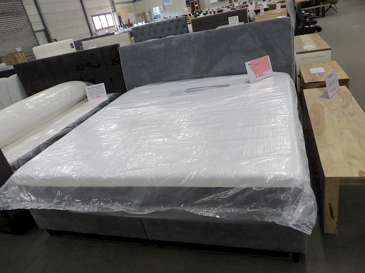 160 x 200 cm, Unterbau mit Bonnell-Federkern, lose Tonnen-Taschen-Federkern-Matratze (H3, Höhe ca. 25 cm), "Samt-Cord" grau