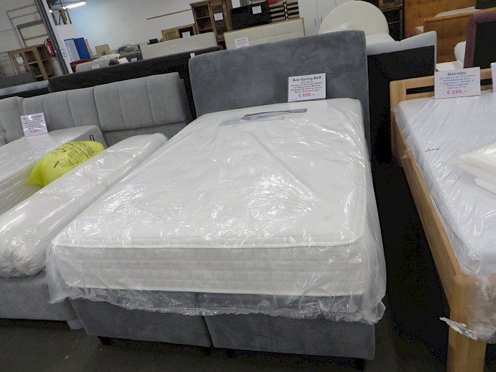 160 x 200 cm, Unterbau mit Bonnell-Federkern, lose Komfortschaum-Matratze mit 1 festeren & 1 weicheren Liegeseite, "Samt-Cord" hellgrau