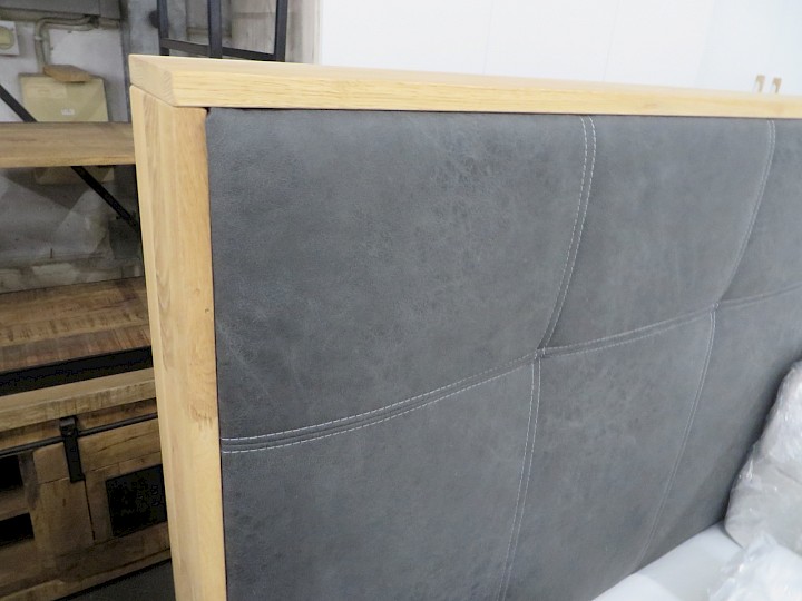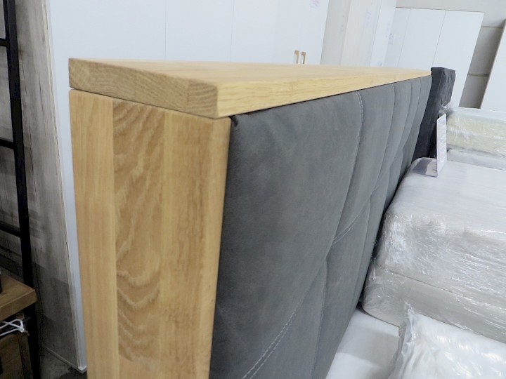 180 x 200 cm, Unterbau mit Bonnell-Federkern, lose Taschen-Federkern-Matratzen, Topper, Bezug Alcatex anthrazit / Eiche massiv geölt