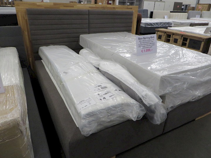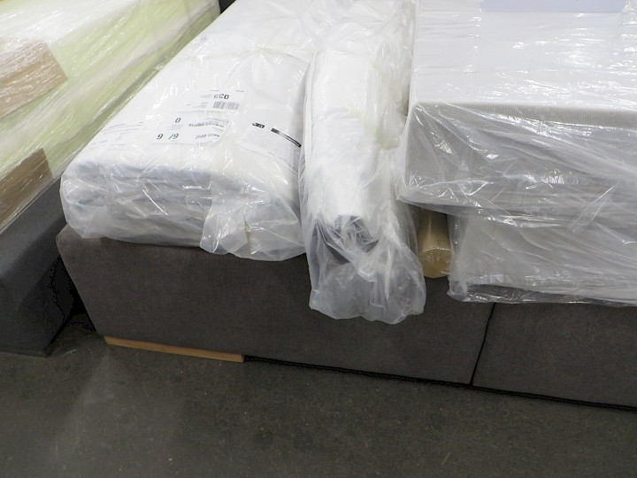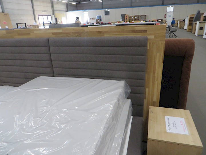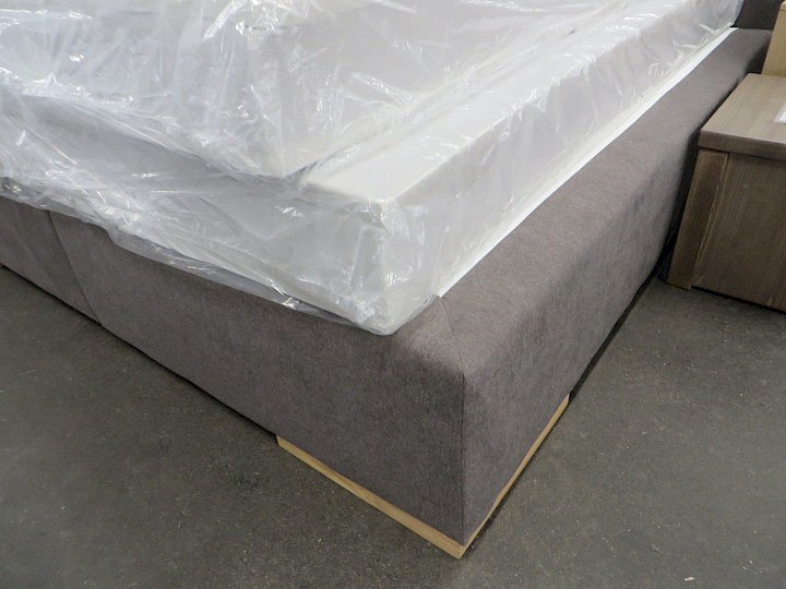 200 x 200 cm, Unterbau mit Bonnell-Federkern, lose Taschen-Federkern-Matratzen (H2), Topper, Chenille mokka / Eiche massiv geölt