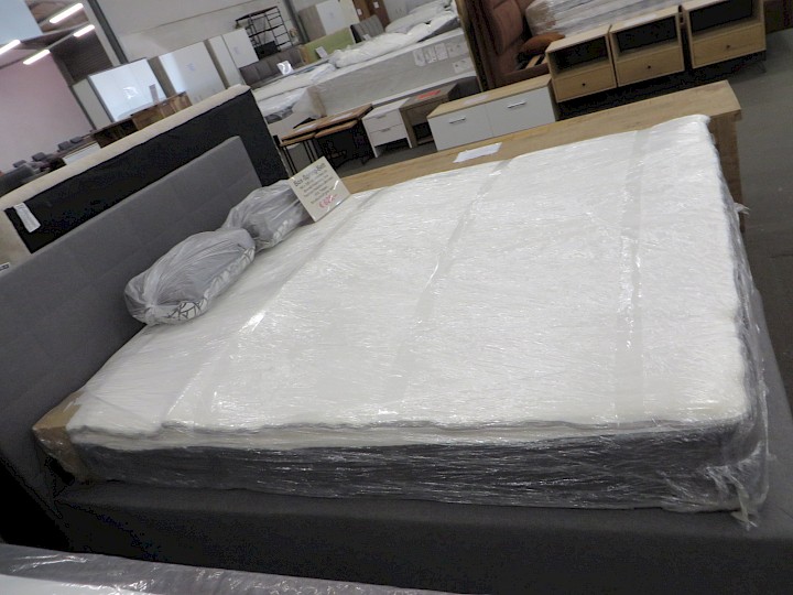 160 x 200 cm, Unterbau mit Bonnell-Federkern, lose Taschen-Federkern-Matratze (H3), Topper, Strukturstoff grau meliert