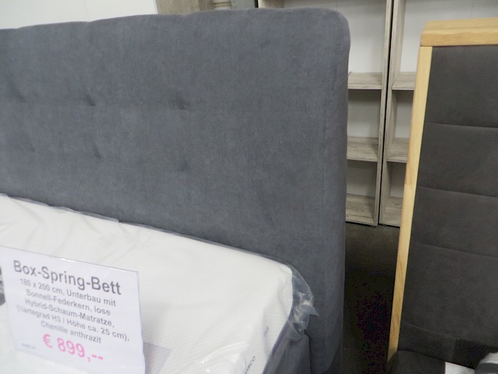 180 x 200 cm, Unterbau mit Bonnell-Federkern, lose Hybrid-Schaum-Matratze (H3, 25 cm), Chenille anthrazit