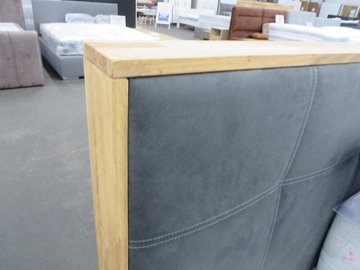180 x 200 cm, Unterbau mit Bonnell-Federkern, lose Taschen-Federkern-Matratzen (H2/H3), Topper, Alcatex anthrazit / Eiche massiv geölt