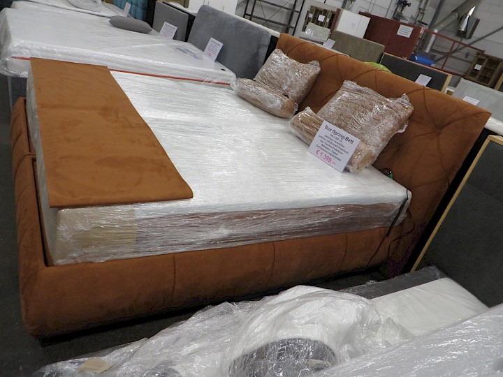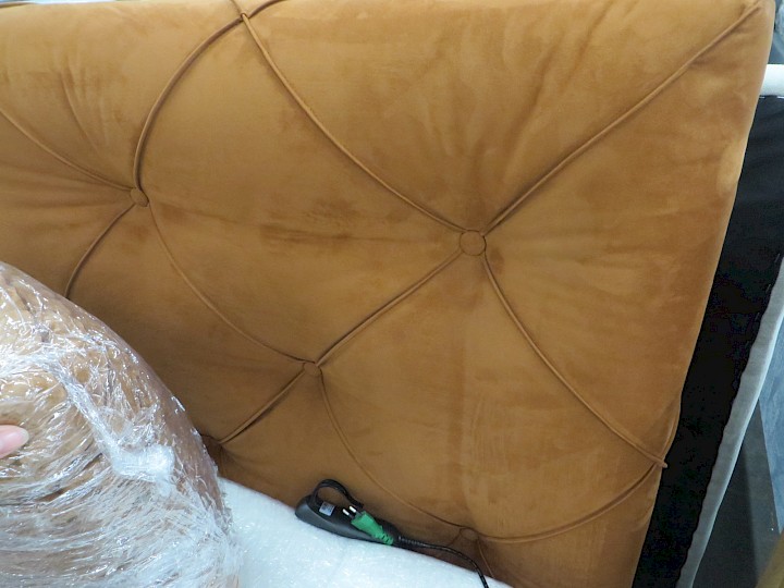 180 x 200 cm, elektrisch verstellbar, Unterbau mit Bonnell-Federkern, lose Taschen-Federkern-Matratzen, Topper, Samtvelours cognacfarben