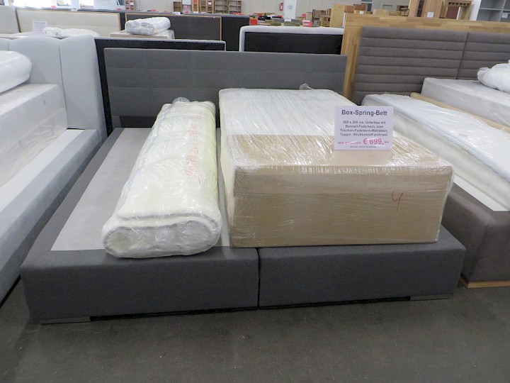 200 x 200 cm, Unterbau mit Bonnell-Federkern, lose Taschen-Federkern-Matratzen, Topper, Strukturstoff anthrazit