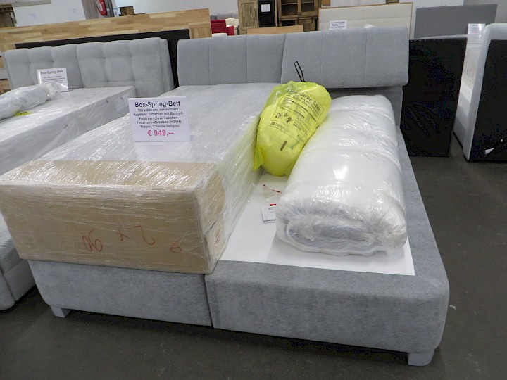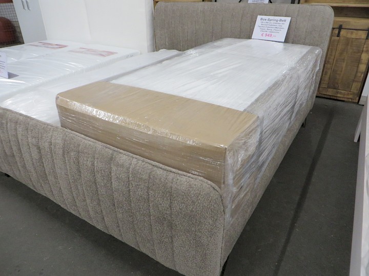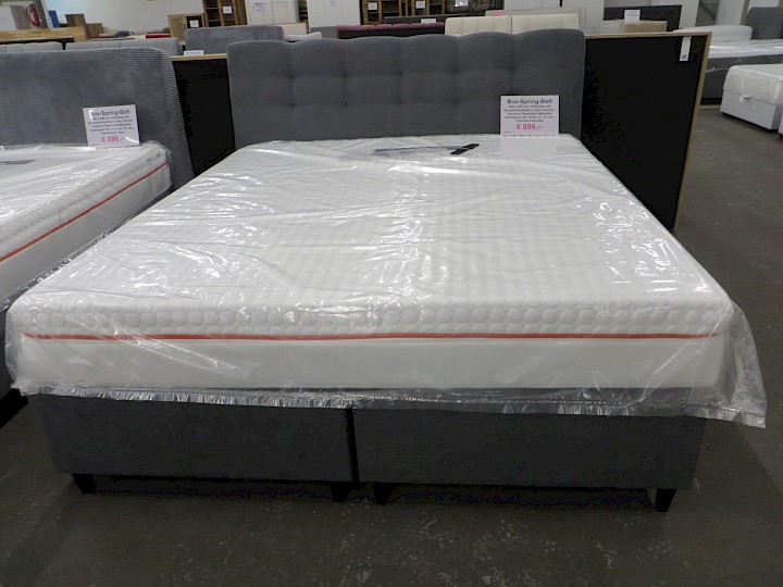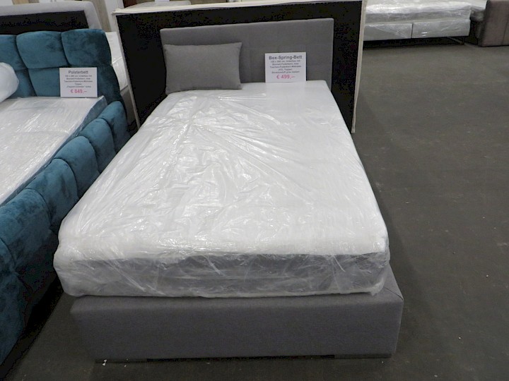 120 x 200 cm, Unterbau mit Bonnell-Federkern, lose Taschen-Federkern-Matratze (H3), Topper, Strukturstoff grau meliert