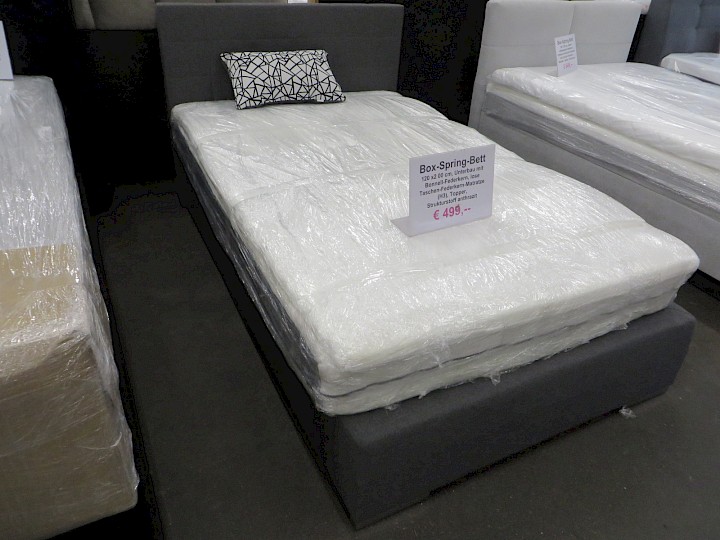 120 x 200 cm, Unterbau mit Bonnell-Federkern, lose Taschen-Federkern-Matratze (H3), Topper, Strukturstoff anthrazit