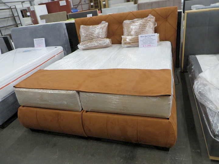 180 x 200 cm, elektrisch verstellbar, Unterbau mit Bonnell-Federkern, lose Taschen-Federkern-Matratzen, Topper, Samtvelours cognacfarben