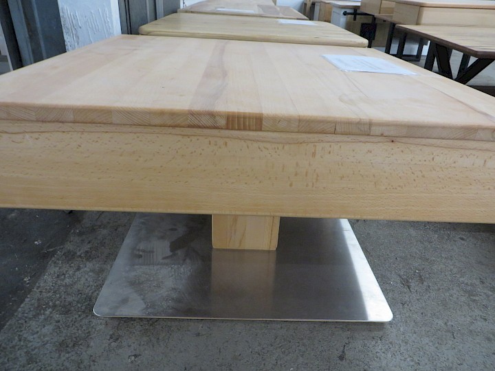 ca. 75 x 75 cm, Kernbuche massiv geölt / Edelstahl matt gebürstet