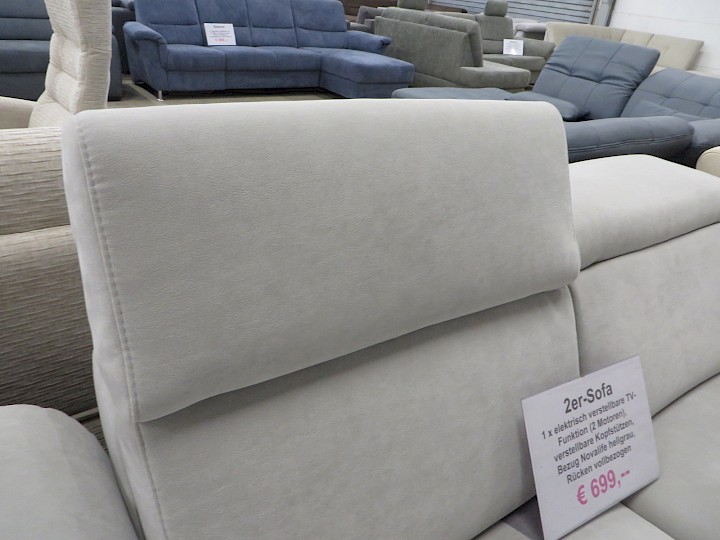 1 x elektrisch verstellbare TV-Funktion (2 Motoren), verstellbare Kopfstützen, Bezug Novalife hellgrau, Rücken vollbezogen