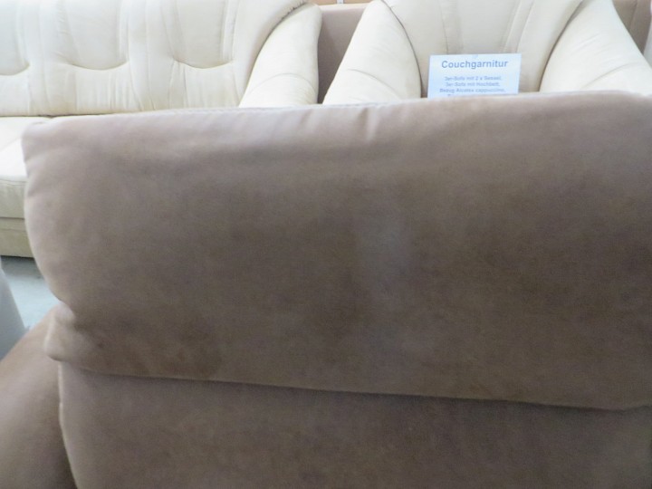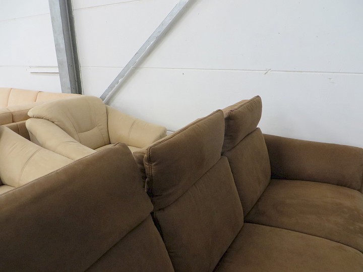 1 x elektrisch verstellbare TV-Funktion, höhenverstellbare Kopfstützen, Bezug Alcatex mokka marmoriert, Rücken vollbezogen