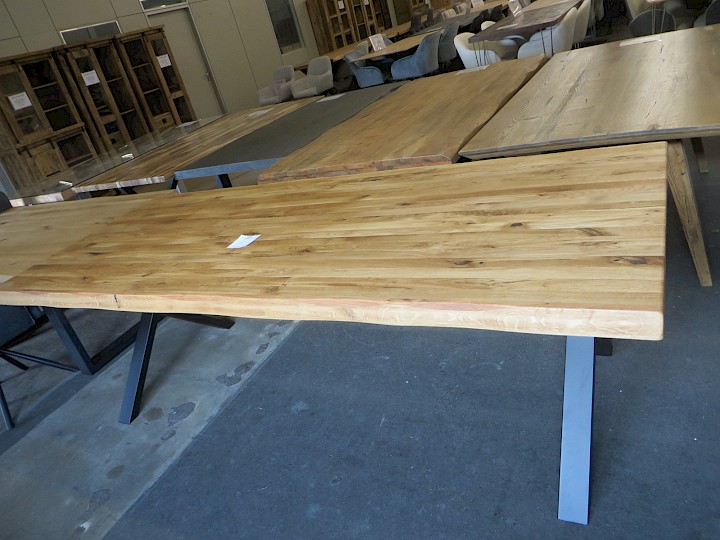 ca. 100 x 240 cm, "Baumkanten-Optik", Eiche massiv geölt / Gestell Metall schwarz