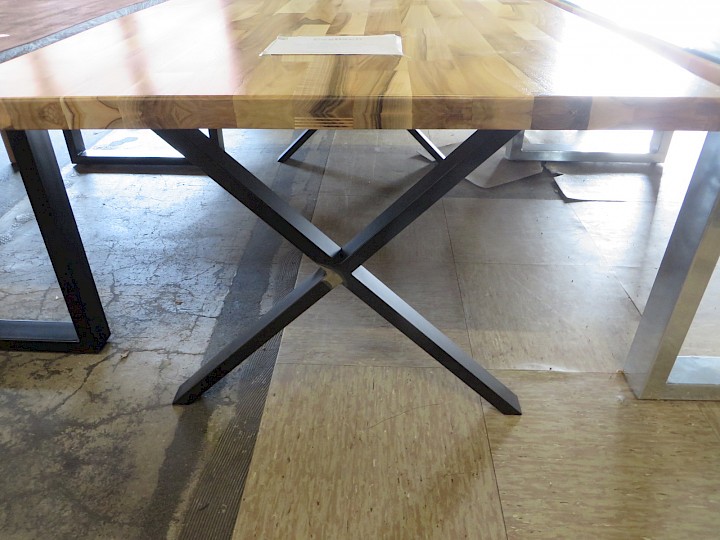 ca. 100 x 200 cm, Akazie massiv lackiert / Gestell X-Profil Metall schwarz