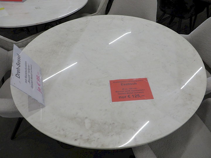 Ø ca. 120 cm, Marmor weiß / Gestell Metall schwarz