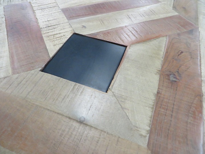 ca. 100 x 200 cm, Mango massiv sägerau mit Intarsien / Gestell Metall schwarz