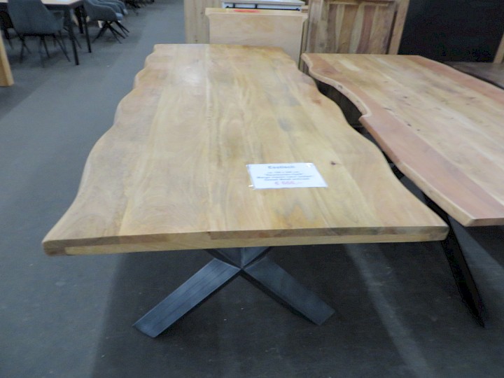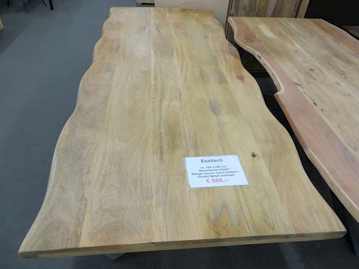 ca. 100 x 240 cm, "Baumkanten-Optik", Mango massiv natur lackiert / Gestell Metall anthrazit