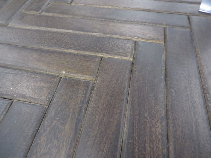 ca. 90 x 160 cm, "Fischgrät-Optik", Akazie massiv mokka / Gestell Metall goldfarben