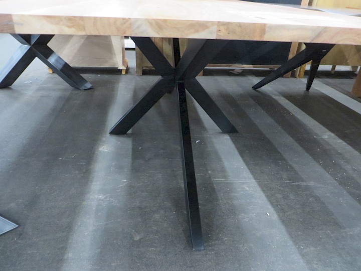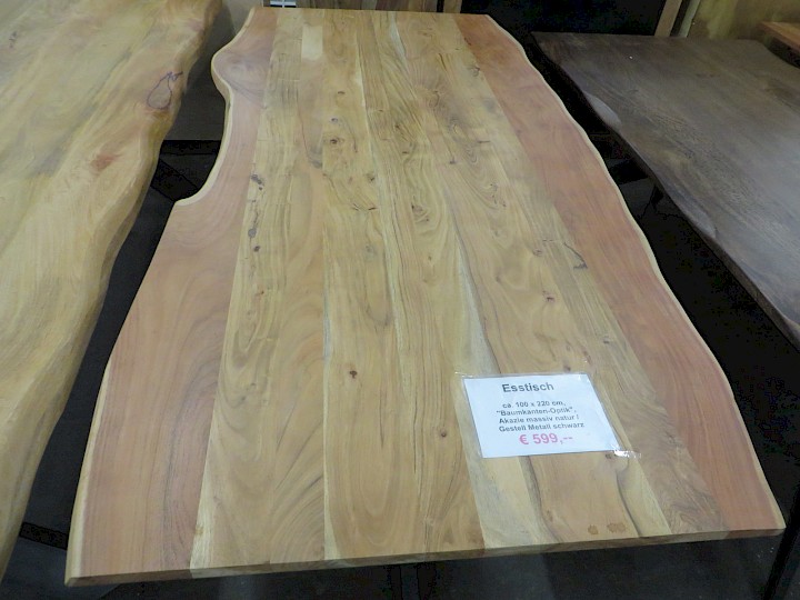 ca. 100 x 220 cm, "Baumkanten-Optik", Akazie massiv natur / Spider-Gestell Metall schwarz