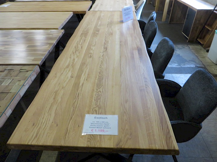 ca. 100 x 300 cm, "Baumkanten-Optik", Eiche massiv geölt / Gestell Metall schwarz
