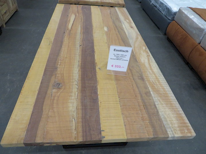 ca. 100 x 200 cm, Akazie massiv sägerau / Gestell Metall schwarz