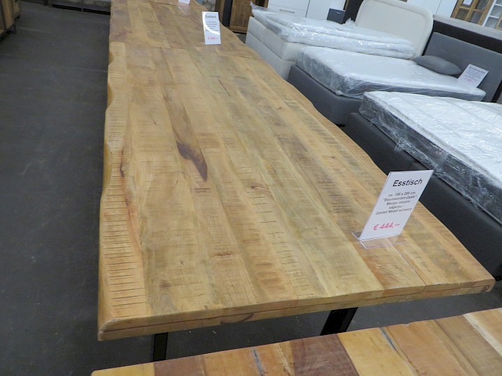 ca. 100 x 200 cm, "Baumkanten-Optik", Mango massiv sägerau / Gestell Metall schwarz