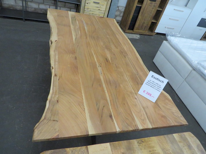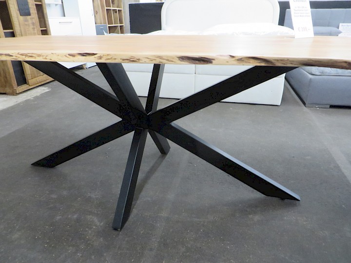 ca. 100 x 200 cm, "Baumkanten-Optik", Akazie massiv natur / Spider-Gestell Metall schwarz