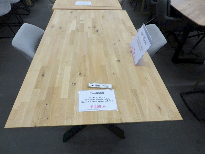 ca. 90 x 160 cm, Wildeiche massiv natur / Gestell X-Profil Metall schwarz