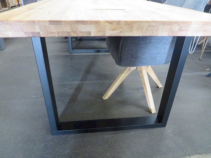 ca. 100 x 200 cm, "Baumkanten-Optik", Eiche massiv geölt / Untergestell wahlweise X- oder U-Profil Metall schwarz
