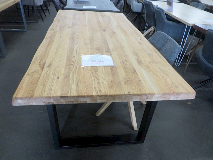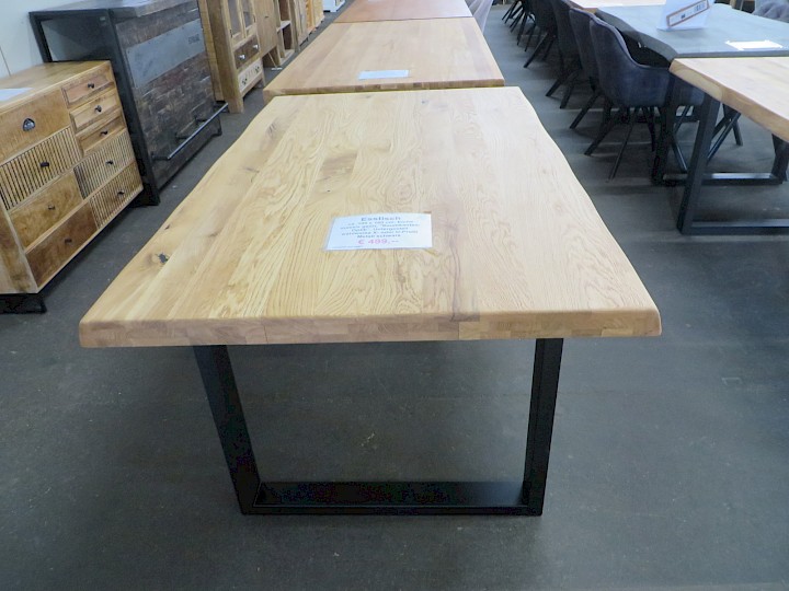 ca. 100 x 200 cm, "Baumkanten-Optik", Eiche massiv geölt / Untergestell wahlweise X- oder U-Profil Metall schwarz