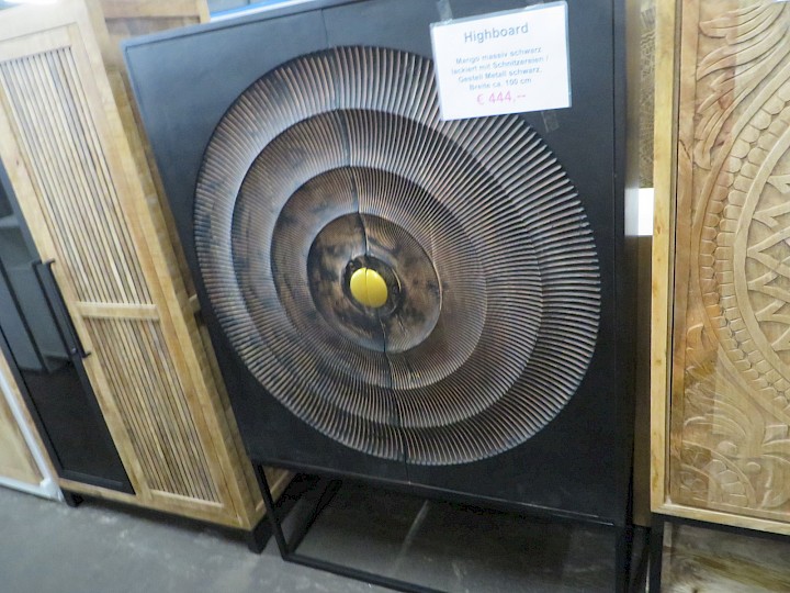 Mango massiv schwarz lackiert mit Schnitzereien / Gestell Metall schwarz, Breite ca. 100 cm