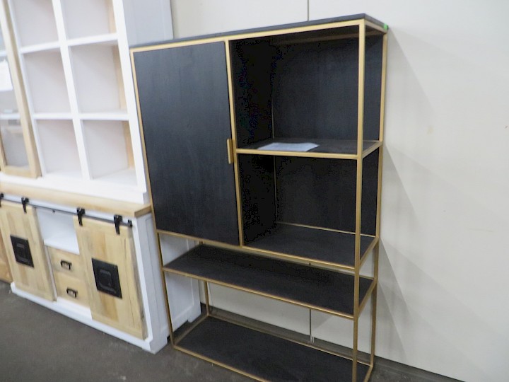 Akazie massiv schwarz / Gestell Metall goldfarben, Breite ca. 105 cm