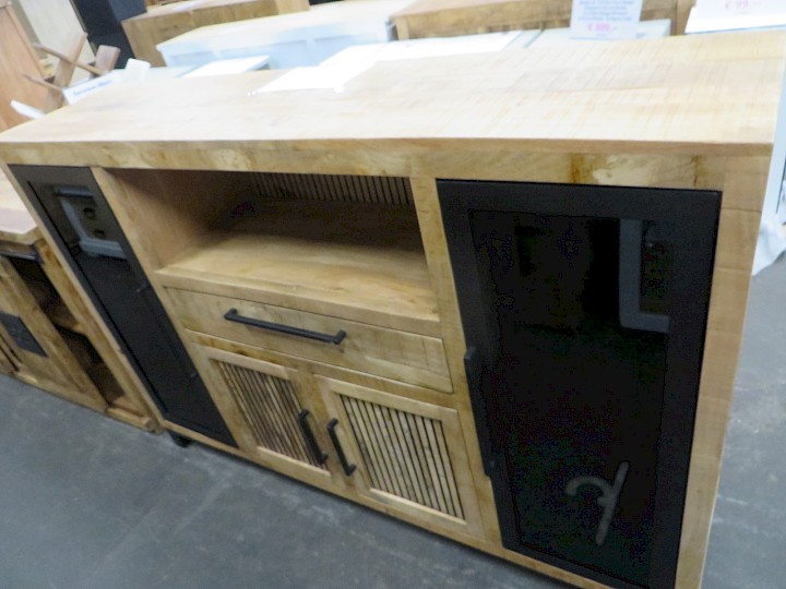 mit LED-Beleuchtung, Mango massiv sägerau / Schwarzglas, Breite ca. 160 cm