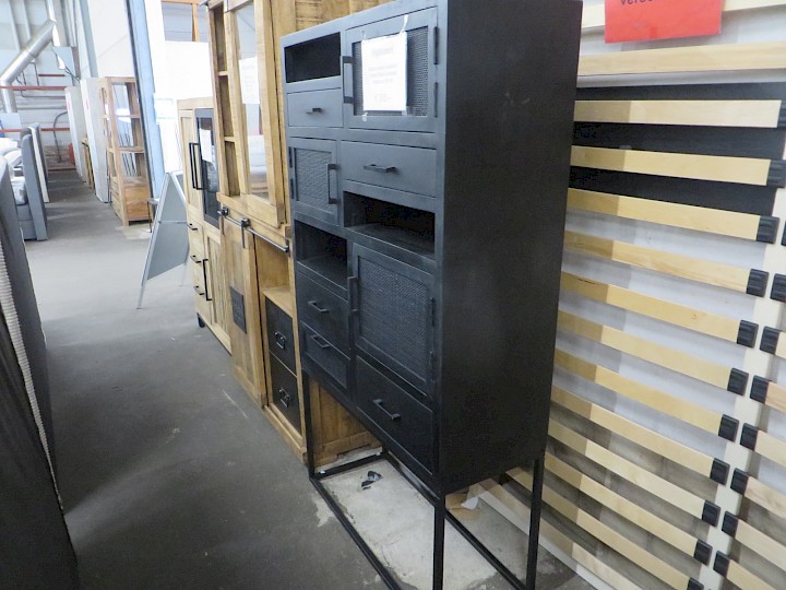 Akazie massiv schwarz / Gestell Metall schwarz, Breite ca. 90 cm