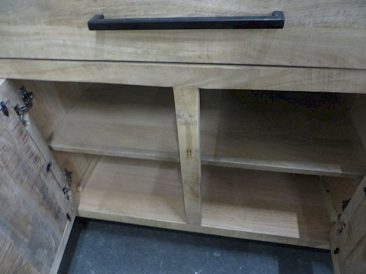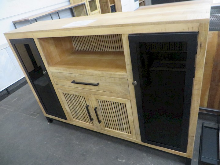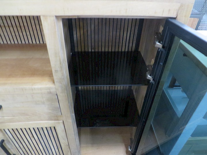 Mango massiv sägerau / Schwarzglas, Breite ca. 160 cm