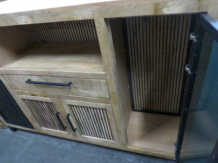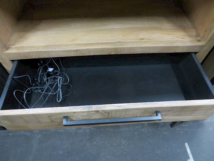 mit LED-Beleuchtung, Mango massiv sägerau / Schwarzglas, Breite ca. 160 cm