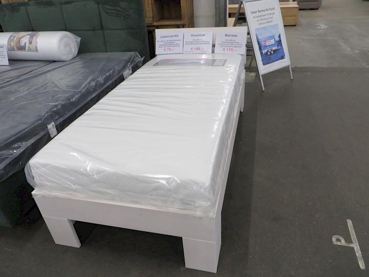 90 x 200 cm, Kernbuche massiv weiß lasiert, ohne Lattenrost & ohne Matratze