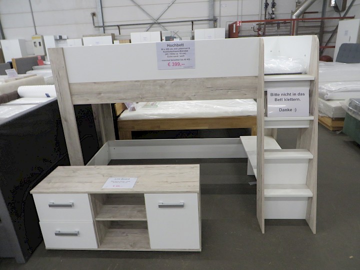 90 x 200 cm, mit Lattenrost & Komfort-Schaum-Matratze (H3 / Höhe ca. 18 cm), Eiche sand / weiß