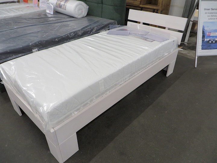 90 x 200 cm, Kernbuche massiv weiß lasiert, ohne Lattenrost & ohne Matratze