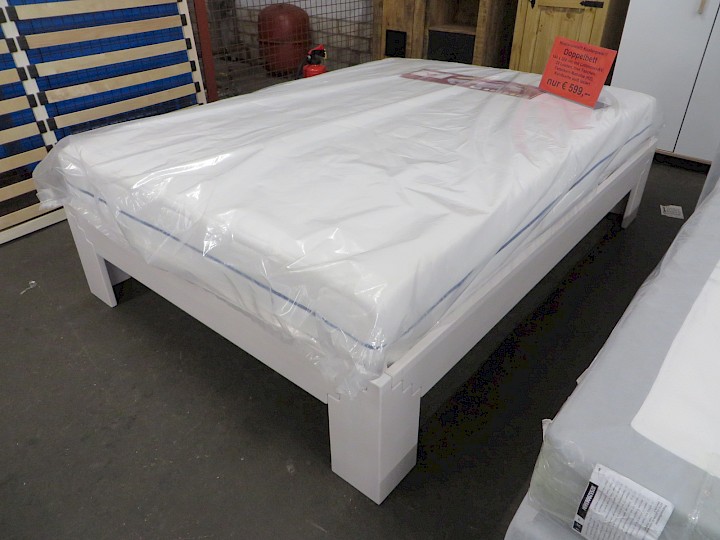 140 x 200 cm, Kernbuche massiv weiß lasiert, ohne Lattenrost & ohne Matratze