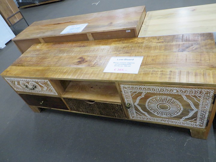 Mango massiv sägerau mit Schnitzereien, Breite ca. 150 cm