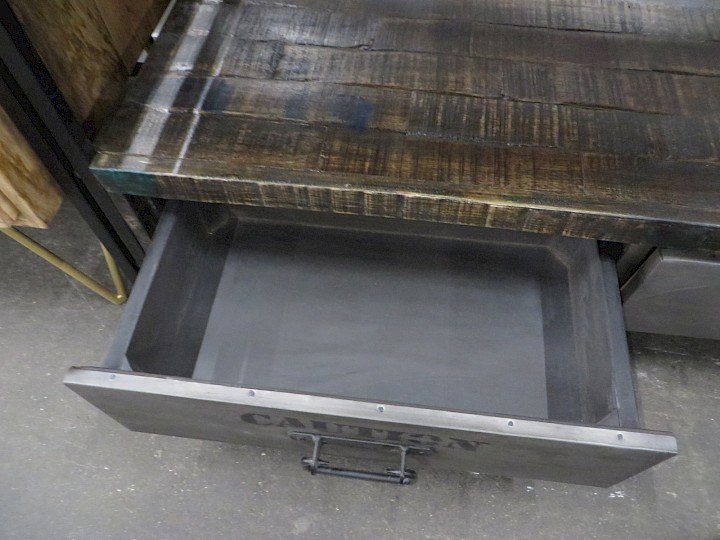 "Vintage-Optik", Mango massiv sägerau / Gestell Metall schwarz, Breite ca. 120 cm