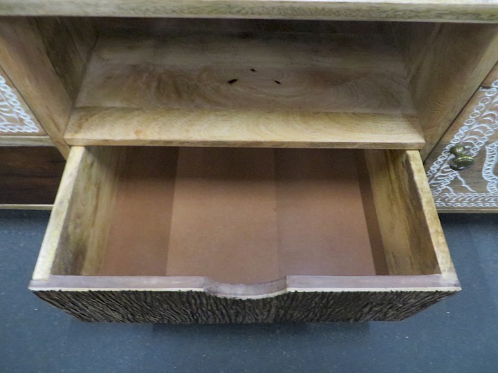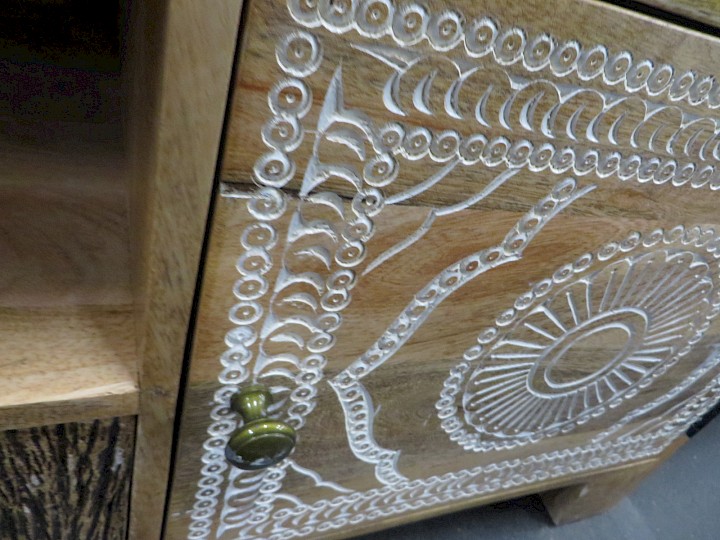 Mango massiv sägerau mit Schnitzereien, Breite ca. 150 cm